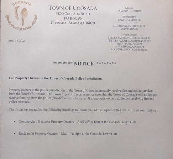 But for now, the fire and police service will continue for those in the current police jurisdiction, both Mayor Houston and Chief Smith said. This is to give time to see if the bill passes for a reprieve, for residents to annex into Coosada, and or come up with a plan on a contract for services if that becomes necessary.