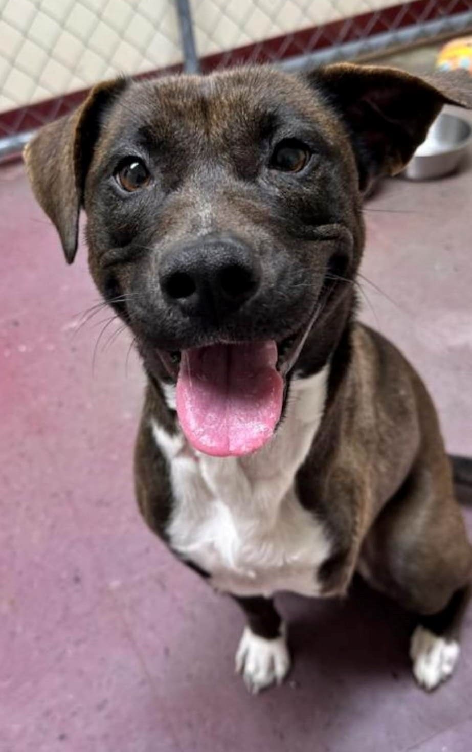 Mercy is a one-year-old female Pit mix, female, 38 lbs. She came to us with a horribly injured left front leg that had to be amputated. She has recovered wonderfully in a foster home and is housetrained, good with dogs, cats and children. Mercy is sweet as can be, very smart and also very active and agile. She will need a privacy fence or 6’ wire fence to keep her safely at home. She loves people and is definitely a HOUSE DOG who likes going for walks and loves car rides – anything as long as she is with her people.