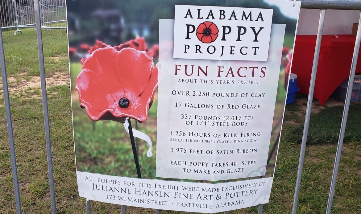 Friday night was the official opening of the 2023 Alabama Poppy Project, thanks to Julianne Hansen Fine Pottery and sponsors. A visit to historic downtown Prattville will be extra special and meaningful now through May 31.