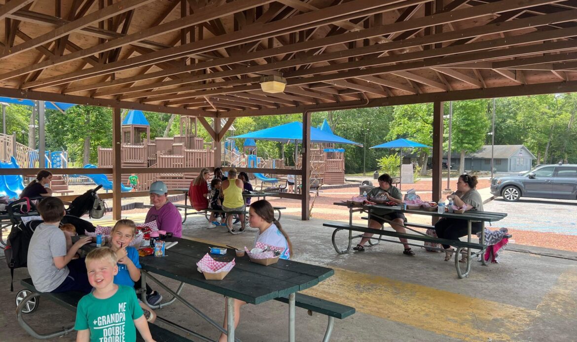 Adult meals are available and can be purchased for seven dollars. Over 100 children and 12 adults were able to enjoy some delicious grilled hamburgers, or hotdogs along with chips, fruit, and milk. The Hot Spot served lunch from 10:30 a.m. until Noon at Village Green Park in front of the library. An added treat that children or adults can purchase on-site is ice cream. They will have popsicles, sandwiches, fudge bars, and a crumble cookie cone for one dollar each. Meals can be served while supplies last.