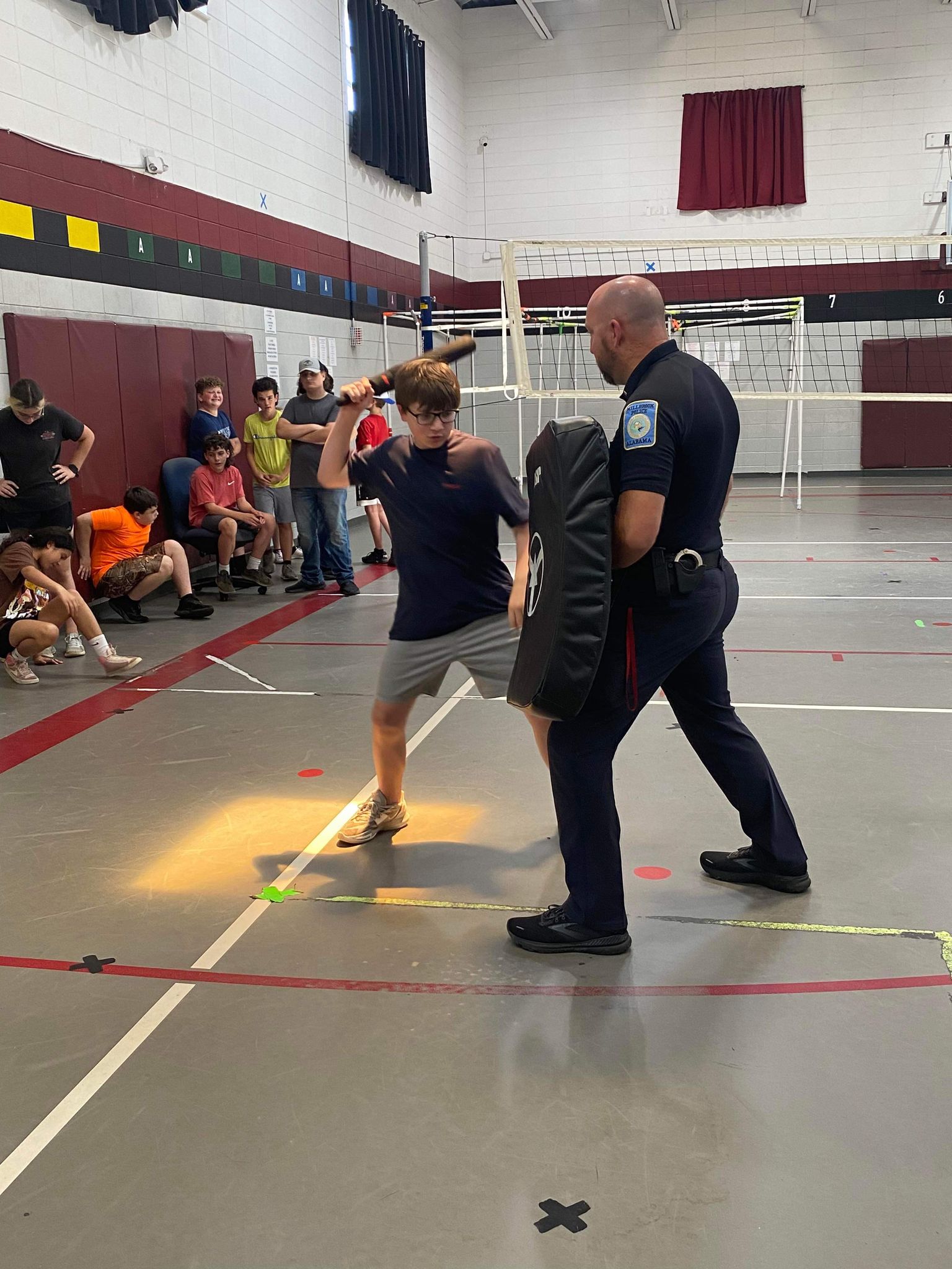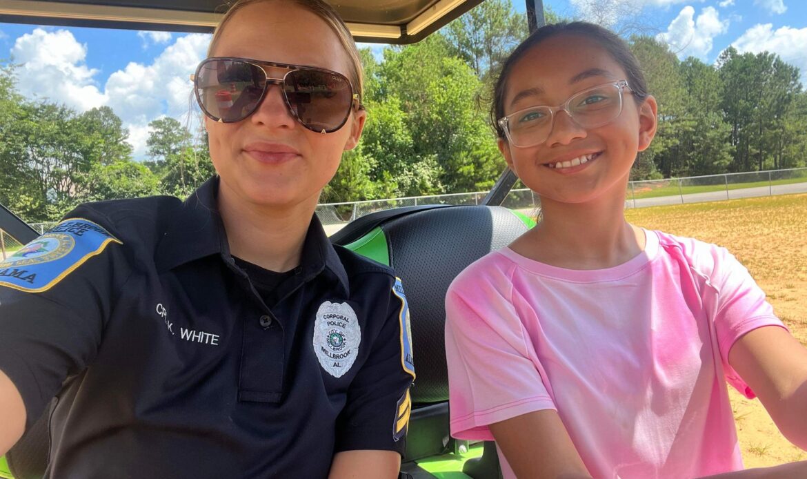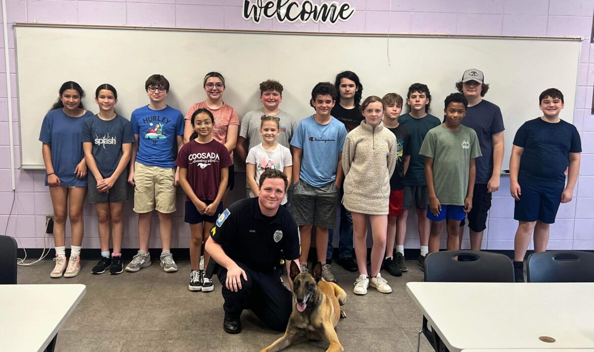 “Cpl. White and I appreciate this week’s volunteers, Sean Kreauter, Millbrook Middle School Principal, and Carrie Alverange, Millbrook Middle School Teacher. Kreauter volunteered to get pepper sprayed and then ran through a similar course that police officers complete in the academy. Alveranga volunteered to be tased. The students enjoyed those demonstrations. Lastly, Cpl. White and I could not thank our volunteers enough! It takes way more than just the two of us to make this academy work. Several officers with the Millbrook Police Department and Elmore County Sheriff’s Office assisted, along with other volunteers. Those volunteers help make this program successful and exciting. They take each class and look for ways to improve their part to make it better for the next class. We also appreciate the support from our Mayor and police administration.”