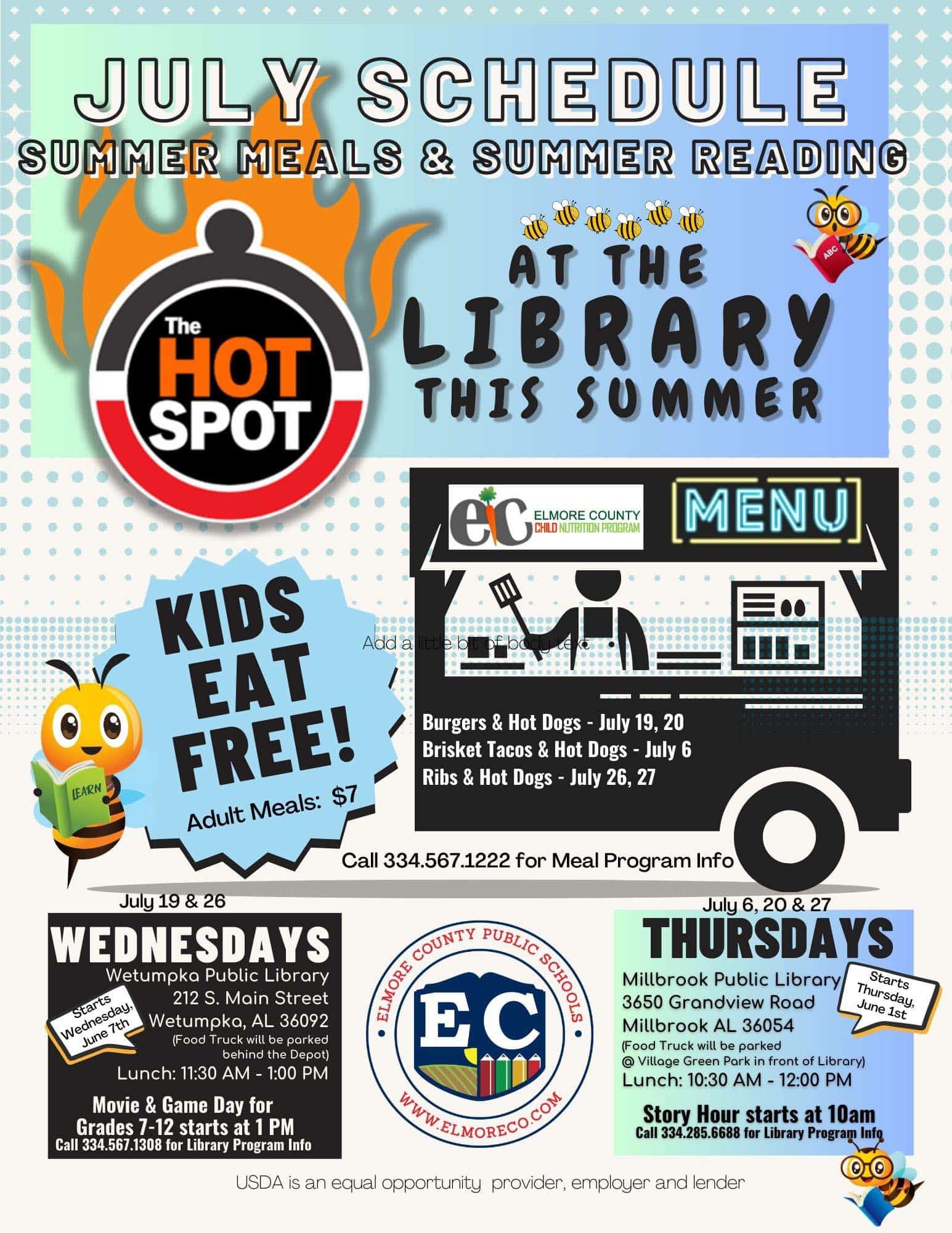 Hot Spot Food Truck Schedule for Millbrook, Wetumpka Libraries