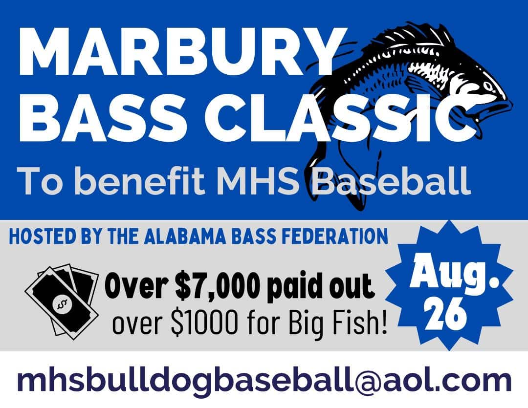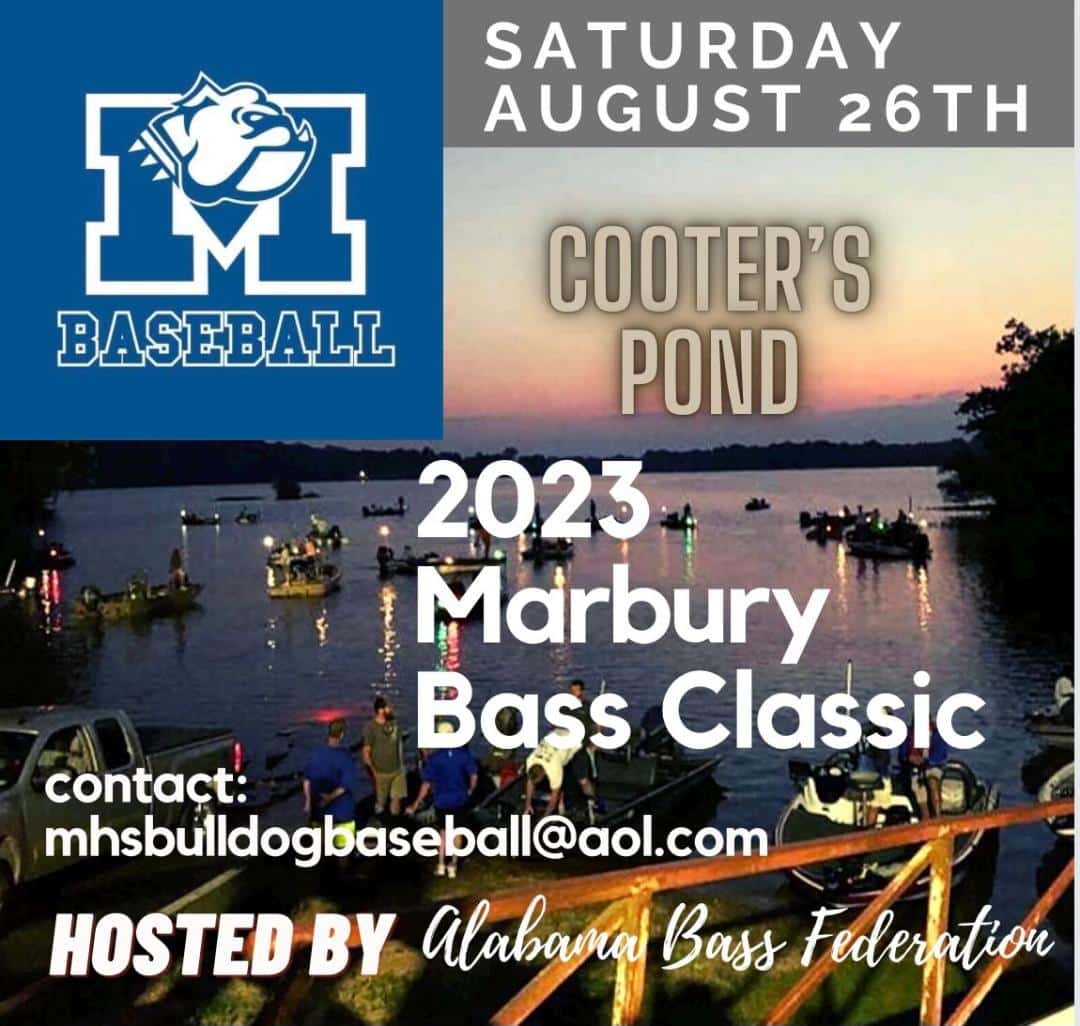 I am the Marbury baseball booster club President Deatsville, AL. Our program is gearing up for our 17th annual Bass Classic. Our tournament is one of the most sought out tournaments around. We average 120-140 boats. We appreciate anything you may do to help our boys have a successful tournament. Tournament takes place at Cooterโs Pond, August 26.