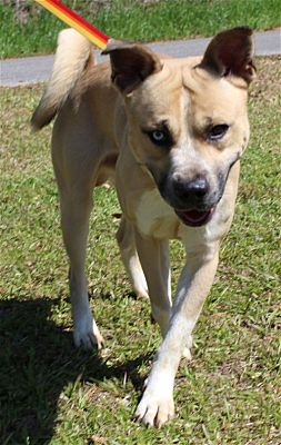 Raul is a 2-year-old male Shepherd (possibly Husky) mix who has already been neutered. He was found as a stray in downtown Prattville; and his owner did not reclaim him. Raul is tan (some say blonde) with white markings. He is a very handsome fellow! Raul’s one blue eye one brown eye just adds to his good looks; and his tail curls stylishly over his back. He weighs 50 pounds so he is a medium sized adult dog. Raul walks well on a leash; and loves hanging out with humans. He is great in play group with other dogs; and is calm enough for younger children. He already knows the command ‘sit’. This sweet boy is loving and cuddly! When Raul is happy, he even smiles! In fact, Raul is a bit of a ham and enjoys all the attention he can get.
