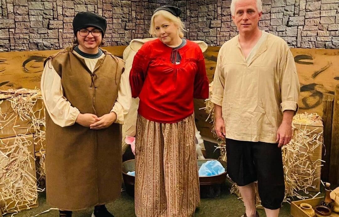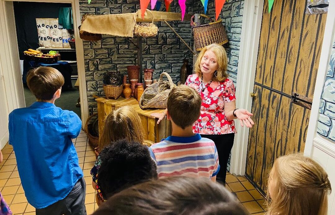 The Bible story each evening was taught by our minister, Brent Missildine, and he dressed the part of a poor peasant as the lessons were taught in “his” peasant house! On the way to the craft station, the children interacted with peasant actors pretending to sell their wares!