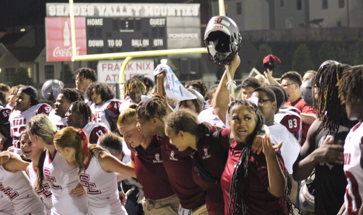Shades Valley mounted their lone offensive threat during the night, converting a touchdown pass just two seconds before halftime to cut the lead to 14-6.