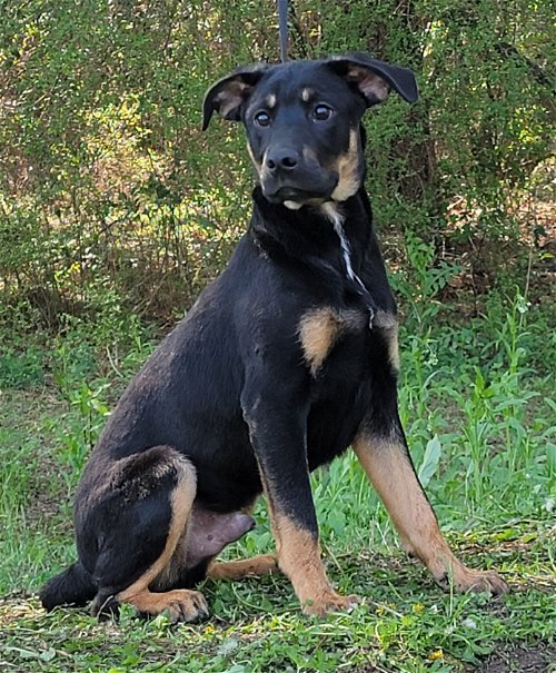 JJ is a male, 9 1/2-months, about 45 lbs. He is a simply wonderful young dog, loves people, playful, friendly, great with other dogs, ready to get out of our kennels into a home with a family to call his own. JJ says he is ready to learn about life with his people, taking long walks, running for toys in the back yard, helping carefully watch the grill in action though if you drop something he might taste test it immediately! And nothing would beat a soft bed inside with his family where he can chill on long lazy days.