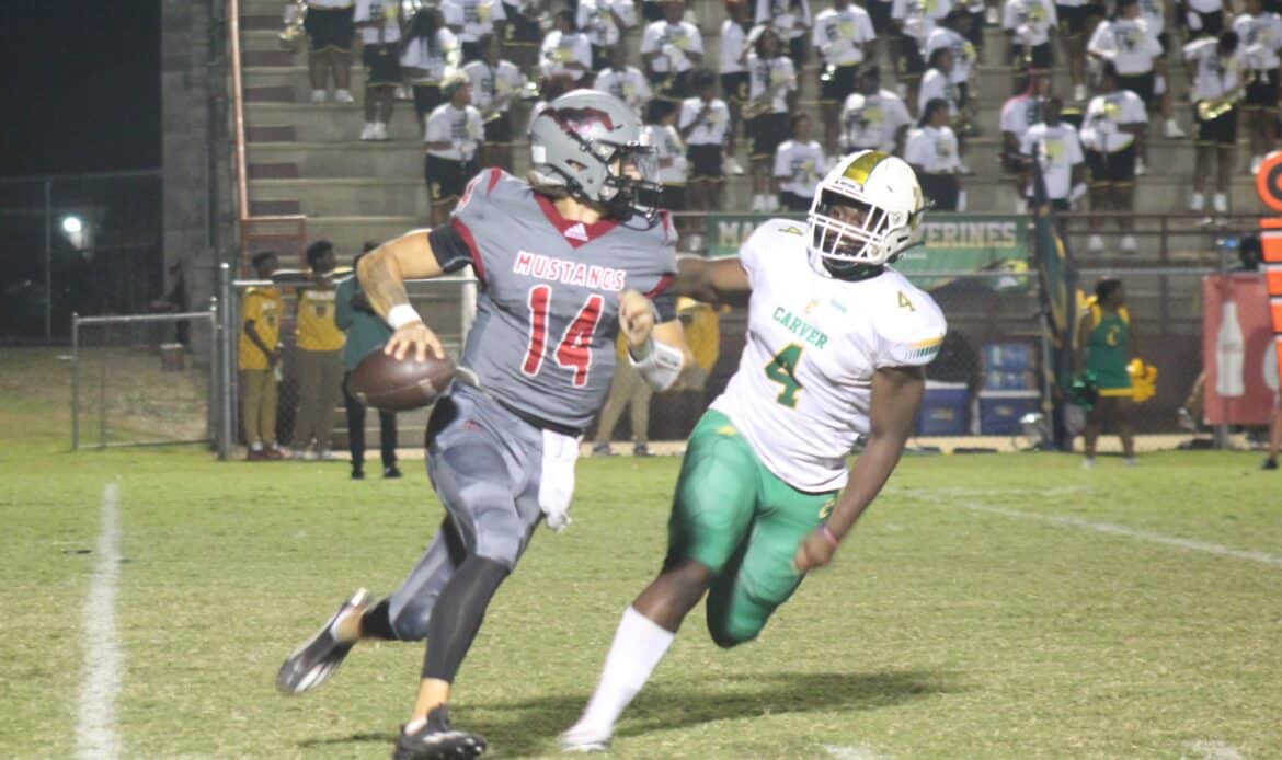 The Mustangs’ defense forced a turnover and got the ball back to the offense with under 4 minutes remaining. They moved the ball down the field again and got into Carver’s 10-yard line, but a lost fumble once again stopped the Mustangs, and the Wolverines were able to run out the clock.