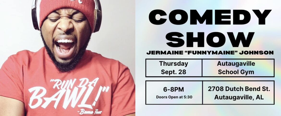 Nationally renowned comedian, actor and writer Jermaine “Funnymaine” Johnson will be headlining a comedy show at Autaugaville School on Thursday, September 28, 6:00-8:00PM.