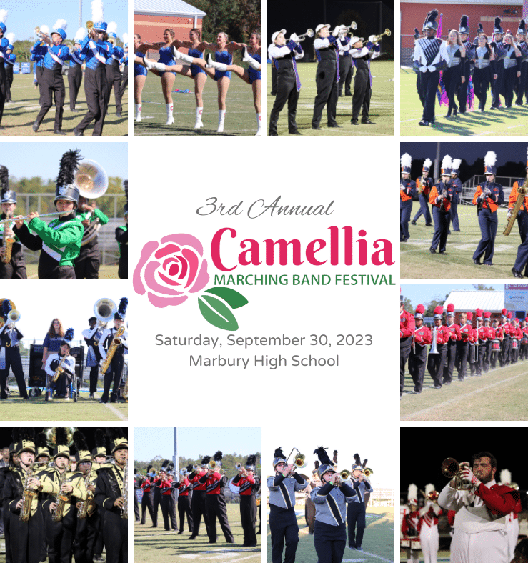 Marbury High School will host its 3rd Annual Camellia Marching Band Festival on Saturday, September 30th with performances beginning at 10 a.m.. The festival will be held on the school’s campus, located at 2360 US Hwy 31, Deatsville. This event will have a 3-judge panel for band adjudication and an educational clinic following each band’s performance.