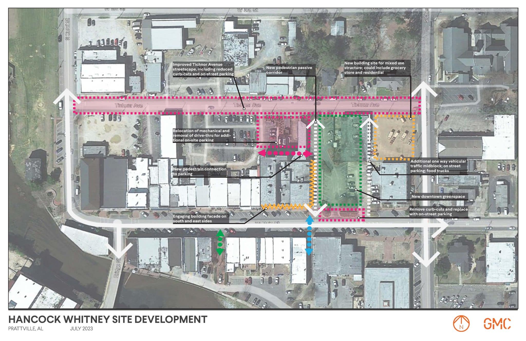 An article by Design Alabama earlier this year praised Prattville for the proposed venue saying “The location is an underutilized space between the former Hancock Whitney bank, recently acquired by the city, and the City Hall Annex.