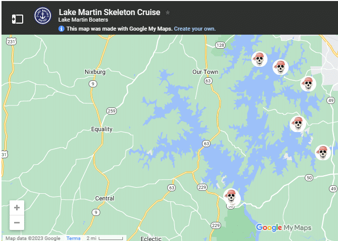 If you still have plans to be on Lake Martin, there is a fun map that will lead you to the Skeleton Cruise!