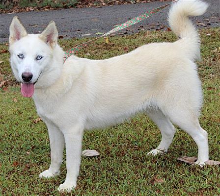 Fancy is a 5-year-old female Husky who must be spayed before adoption. She came to PAHS as a stray who was brought in by county animal control. Fancy’s medium length coat is solid white and she has brilliant, beautiful blue eyes. She weighs 63 pounds so she is a large dog. Fancy is a typical Husky–very energetic and playful. This breed is known to be the ‘Houdini’ of the dog world so she would need a SECURELY fenced yard where she could safely exercise and play. Fancy would be good with other dogs and older children (older due to her activity level). Come check this gorgeous girl out soon.