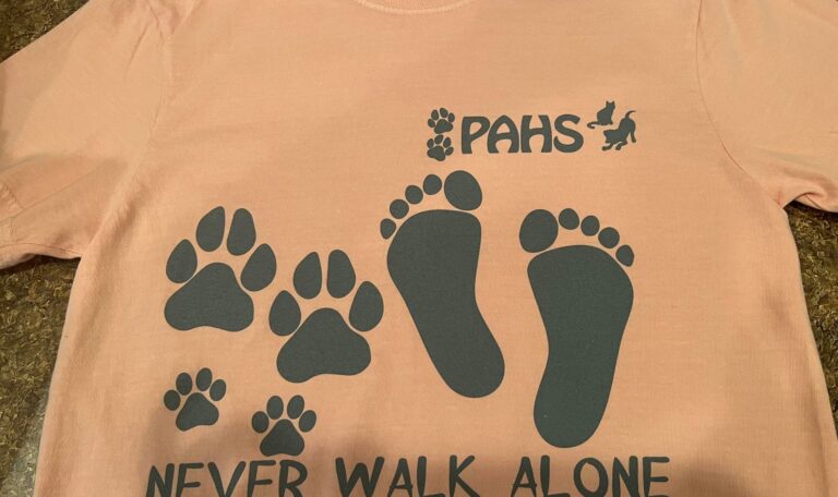 PAHS comfort colors t-shirts will be available at Pet Palooza. Price reduced to $15 for short sleeve shirts; and $20 for long sleeve shirts. In short sleeve shirts they have small, medium, large, extra large, 2X, and 3X shirts available. In long sleeve shirts they have medium, large, extra large, and 2X.