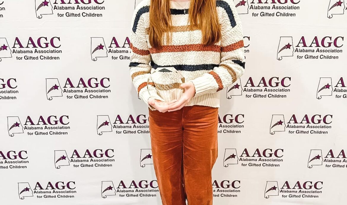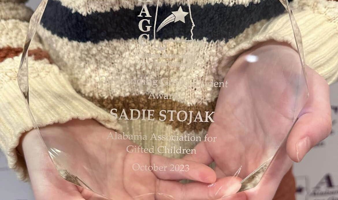Sadie Stojak, a Prattville Junior High School student, was named the Alabama Association for Gifted Children‘s 2023 Outstanding Gifted Student in Alabama.