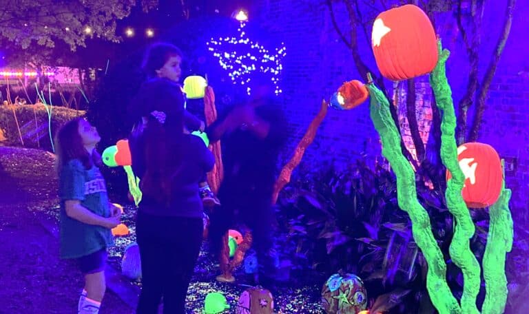 The Glow Trail expanded this year with the Butterfly Garden, Owls, and Pumpkin Towers. The Butterfly Garden started construction in July. Mikayla Rawls, Mayor’s Administrative Assistant and Lisa Byrd, Mayor’s Executive Assistant, carved over 200 pumpkins for the Butterfly Garden and Sunflower field.
