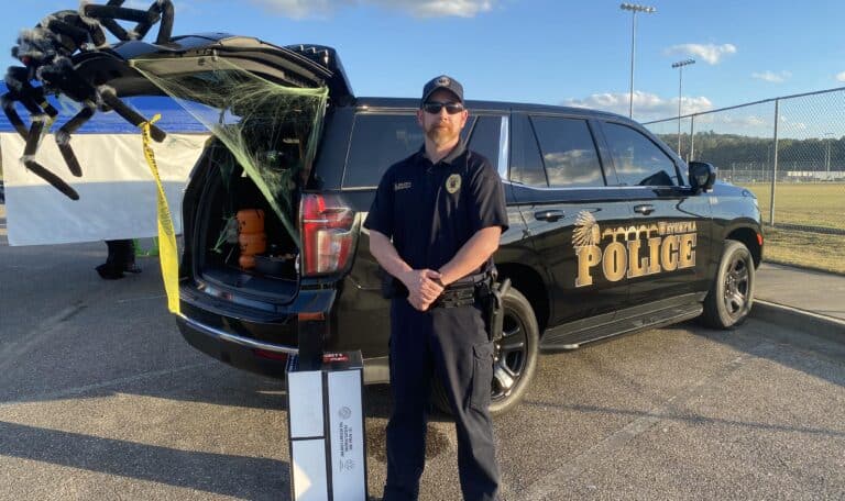 On Sunday, the Alabama Backs the Blue, a Nonprofit organization, held their third annual First Responder trunk or treat event at the Wetumpka Sports Complex. This event was completely FREE for all who attended. This year was the first year at the Complex, but a great location that allowed the First Responder vehicles to park and still have room for guests to walk around. Over 300 children enjoyed a FREE dinner that consisted of a hot dog, snacks and a drink. Attorney Dee Dee Calhoun donated all of the juice for the children.