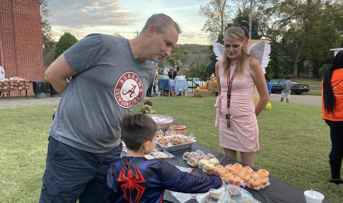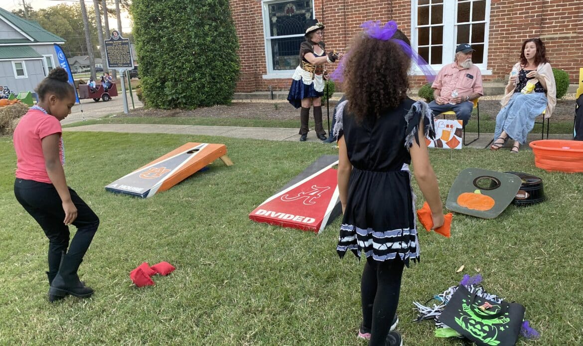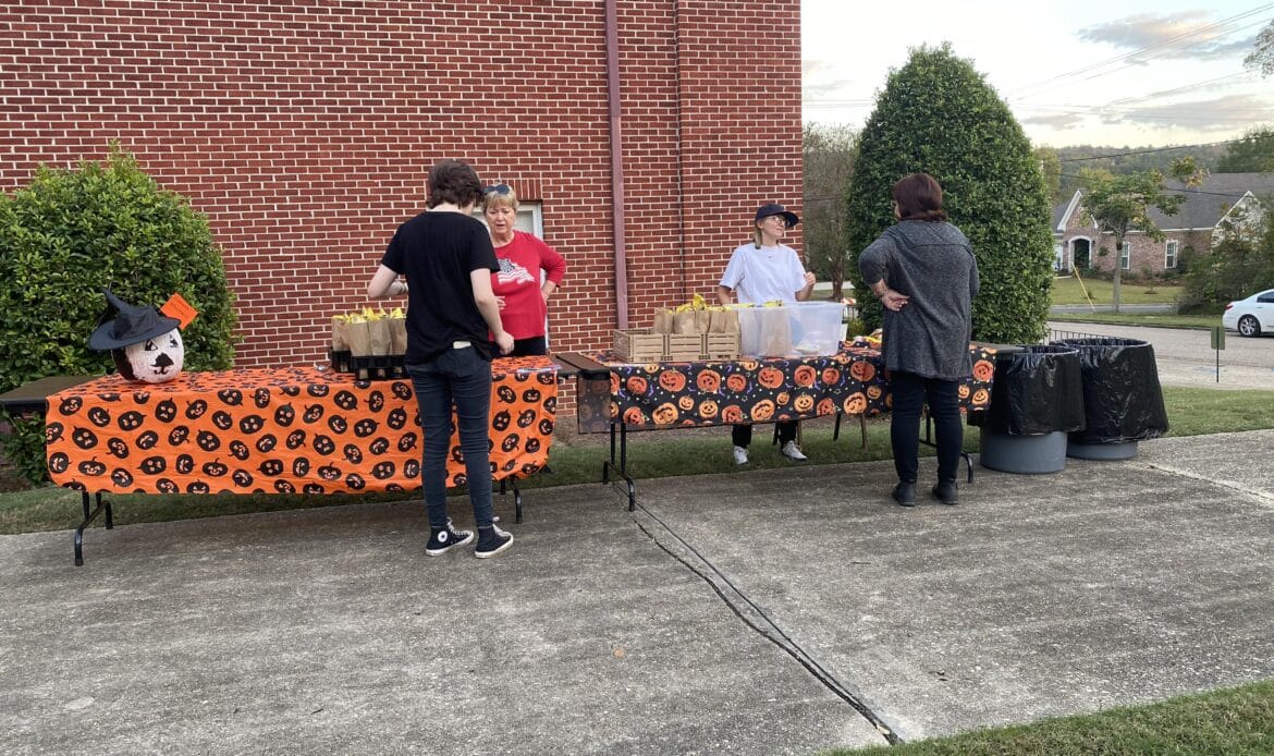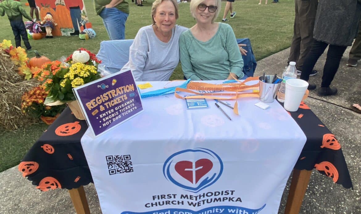 First Methodist Church of Wetumpka held their annual Fall Festival on Wednesday, October 25. An estimated 300 people gathered on the front lawn of the church from 5 -7 p.m. to enjoy hot dogs, chips, candy, and games. It’s unclear whether the adults or the kids enjoyed the two main attractions more, which were Sno Biz and train rides!
