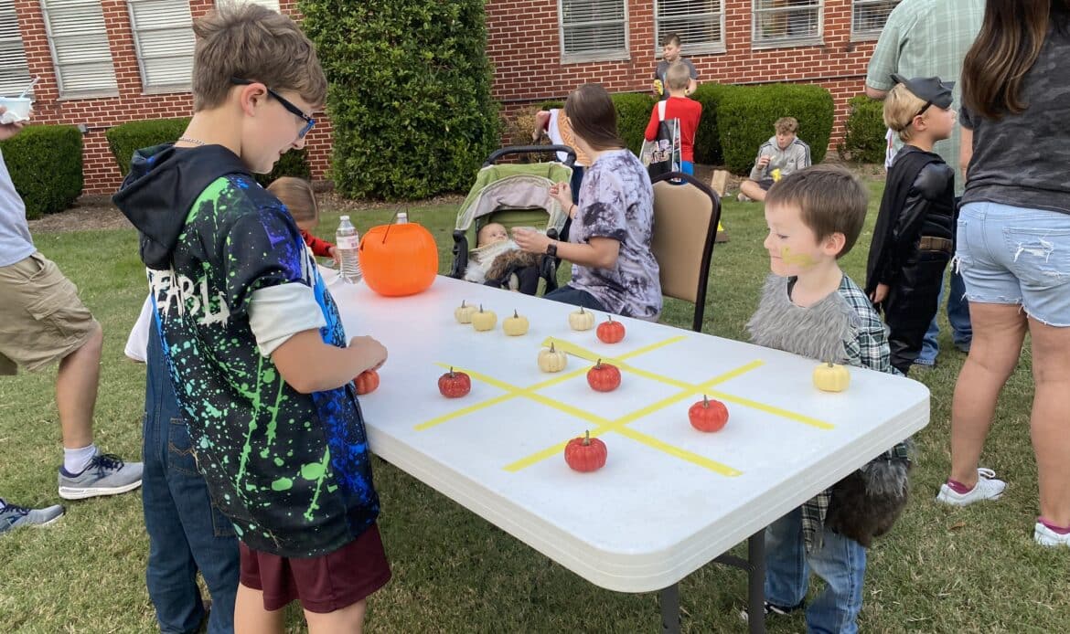 Families had a blast participating in several games, including Cake Walk, Go Fish, Face Painting, and Putt Putt Golf. The event was open to the community and there were several first-time visitors who enjoyed the festivities. Hope Sanders, who handed out food said, “I really enjoyed seeing our church serving together in our community and all the joy that was evident in everyone participating and serving!” Door prizes were given to two different families whose names were drawn from the registration booth. Prizes included baskets with gift certificates to Frios and lots of candy.
