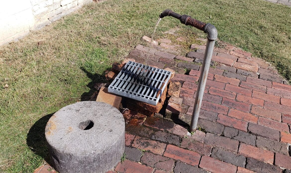 Interesting things are not just within the walls, but also on the grounds. The artesian well at the back of the property has daily and frequent visitors, who fill up water jugs from the free-flowing water.