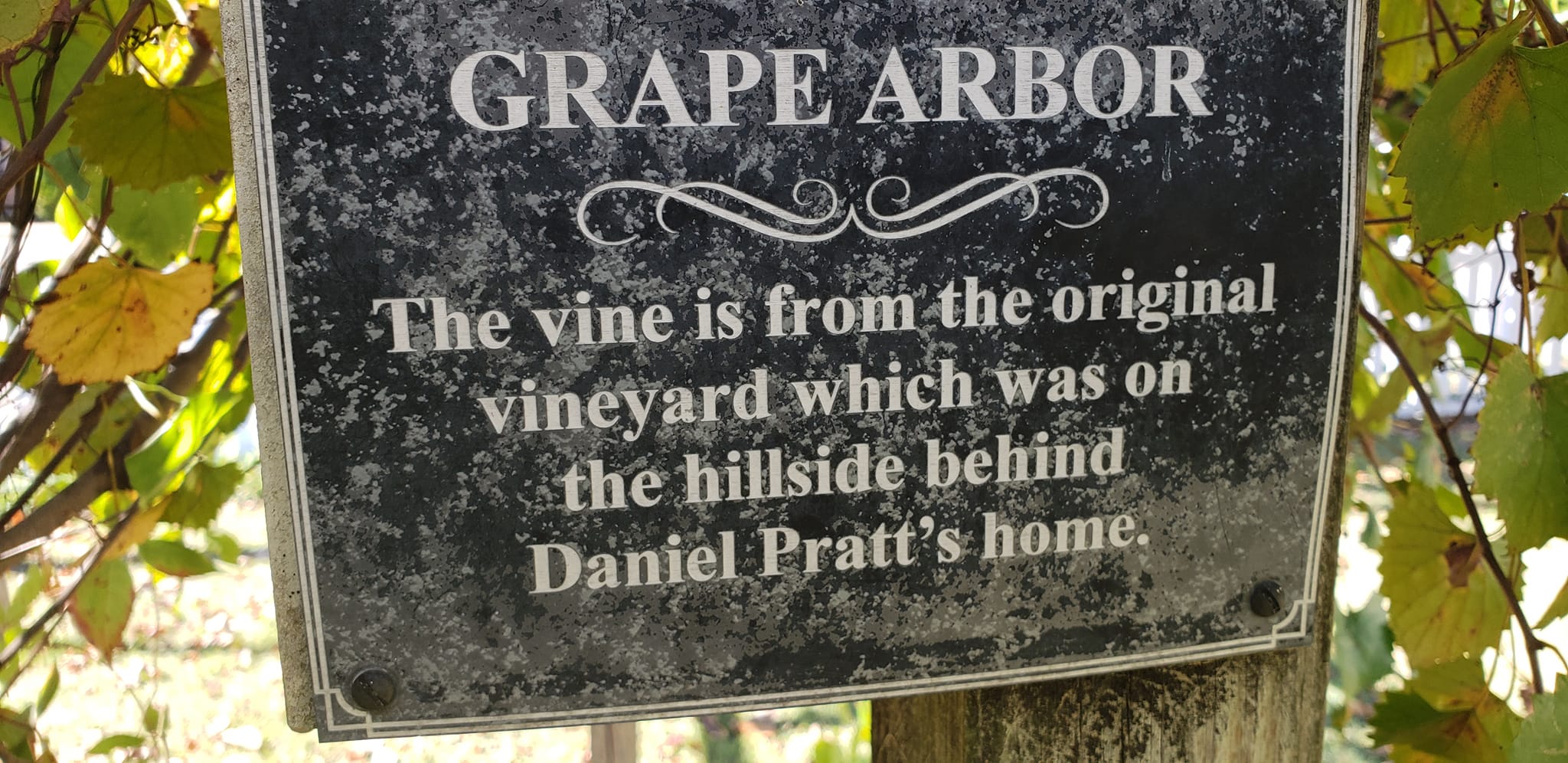 There is also a grape arbor, which contains original vines found on the grounds of Daniel Pratt’s former home that once sat on the hill overlooking his business creations.