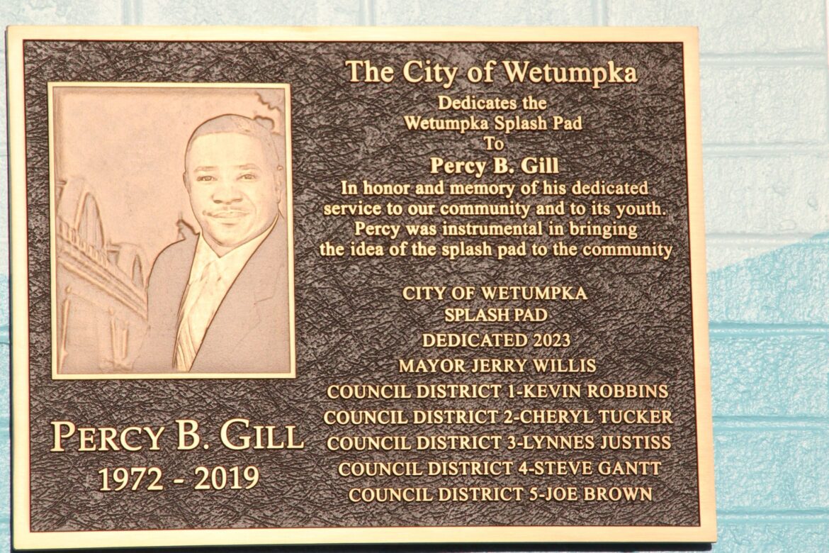 Percy Gill, a son of Wetumpka and the River Region, was honored and memorialized Nov.5, as the Wetumpka Splash Pad was dedicated in his honor. Family, friends and government officials gathered at the Splash Pad to pay tribute to the political leader, community servant and friend.