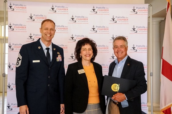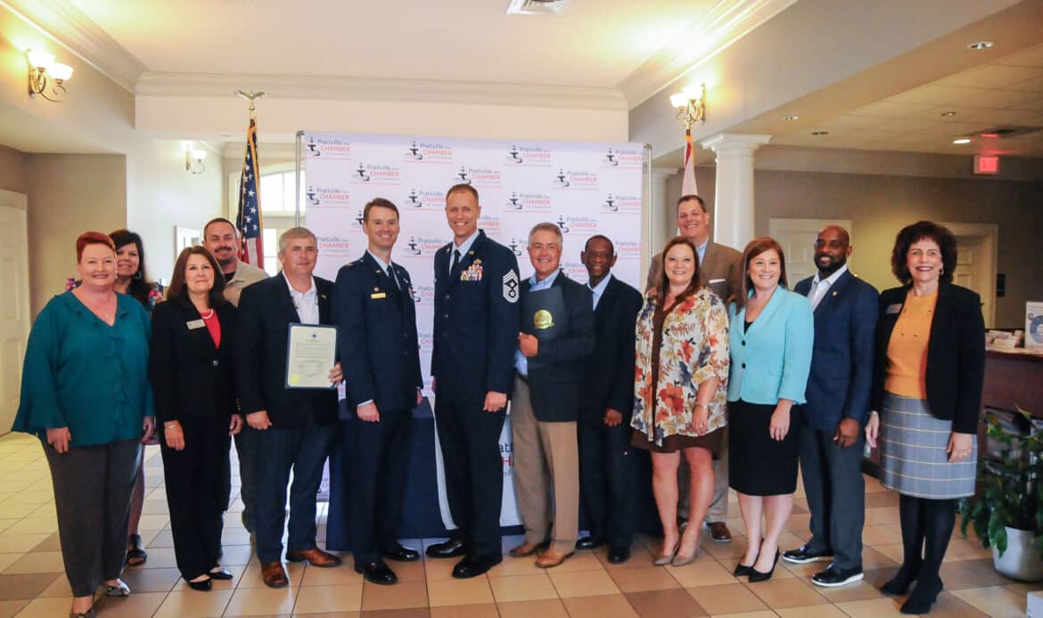 In attendance Members of the Prattville Area Chamber of Commerce Board of Directors, numerous men and women in uniform, state representatives and members of the Prattville community.