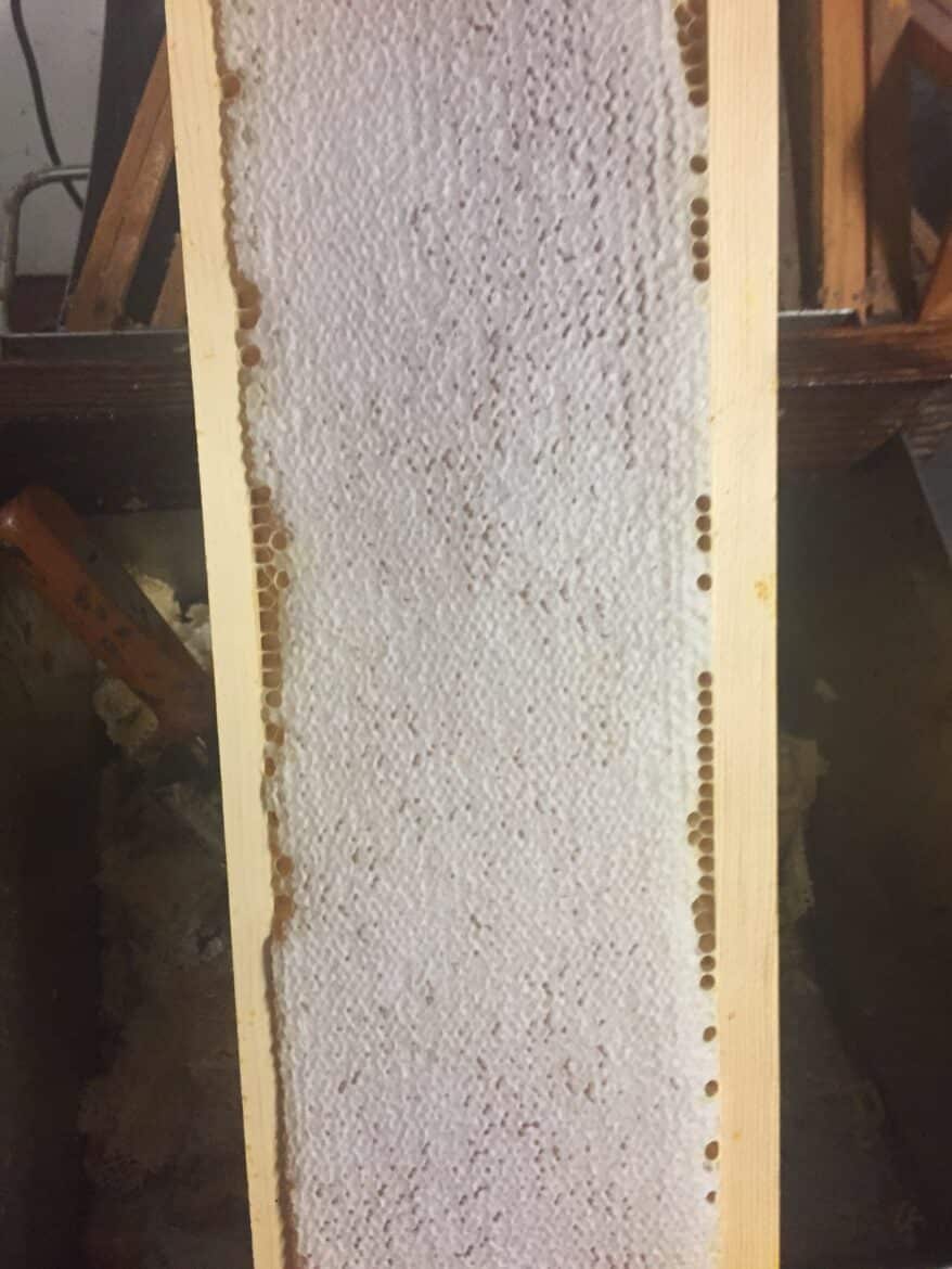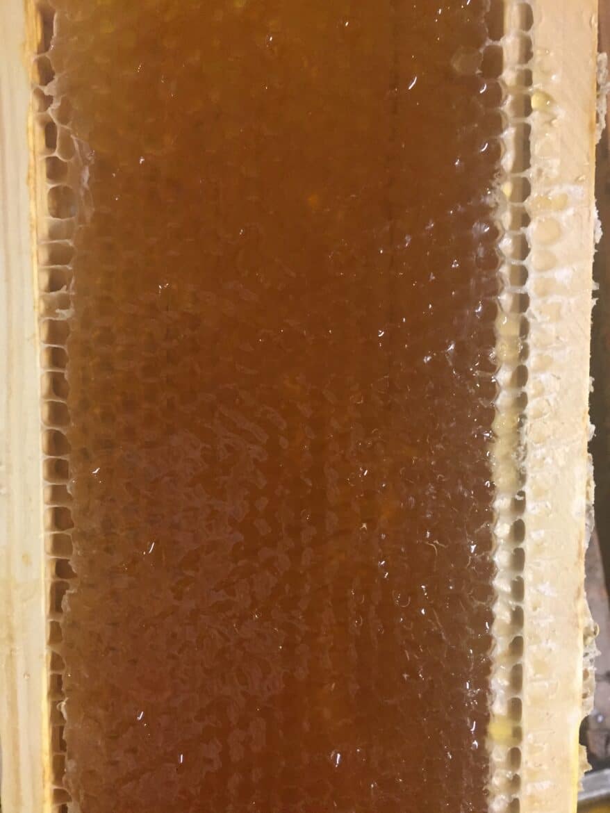It comes in a small jar to a five-gallon bucket. Depending on the time of year and the type of crops the bees are pollinating, that affects the direct flavor and color of the honey that the bees produce. Honey from the early spring will be lightest in color and the mildest flavors. As the summer progresses the darker in color the honey becomes and more flavorful as well. “Most people around here know what Kudzu is. It’s a vine that takes over the world. It has a purple flower that produces a purple nectar, and in a jar, it looks black because it’s so dark. But put it on a paper plate and you can see it’s purple like grape jelly. When the goldenrods and ragweed just finish blooming it’s almost as dark as used motor oil and a much stronger flavor,” Mills said.