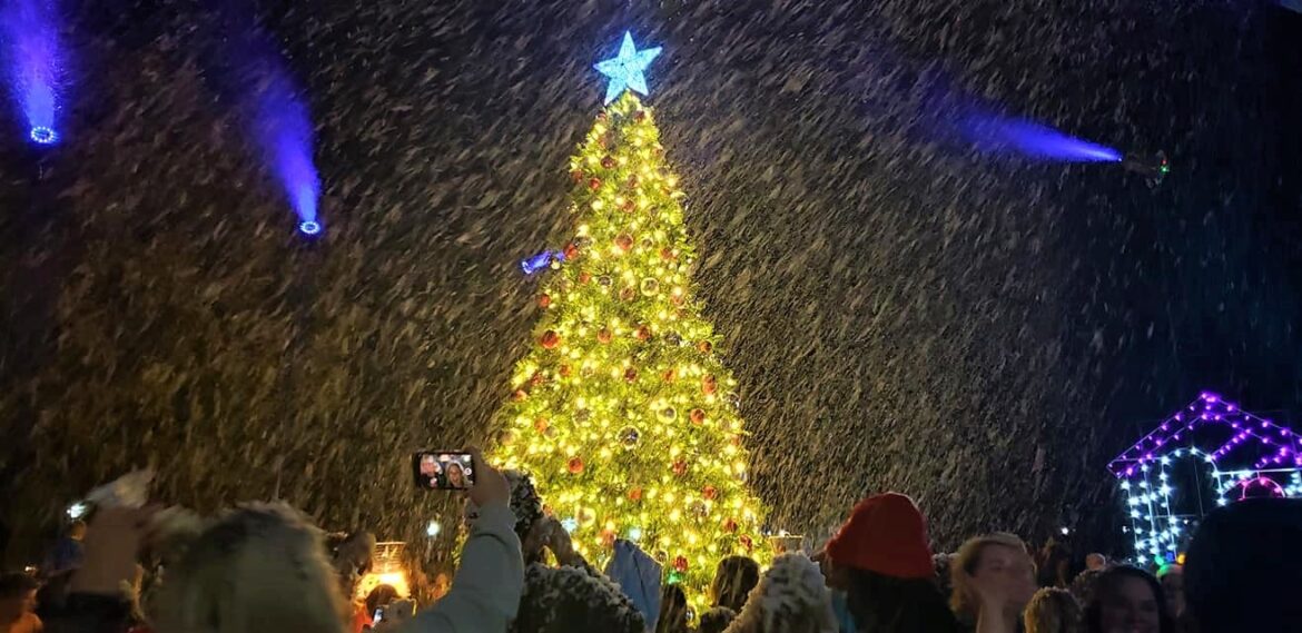 Top Photo: A shot of a previous tree lighting. But, once again the Snow will fall at the upcoming event Thursday at Village Green Park. (EAN file photo)