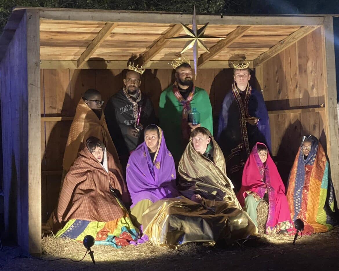 Pastor DJ Stinnard with The Gathering Place told the story of the birth of Jesus, followed by beautiful carols sung by a praise band. The church also provided the Live Nativity.