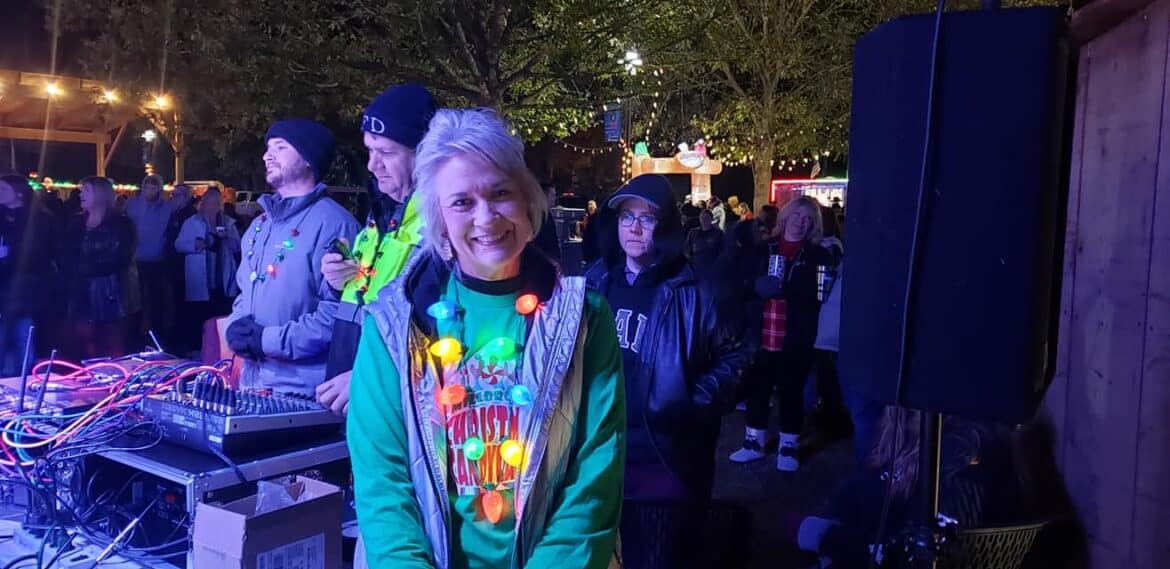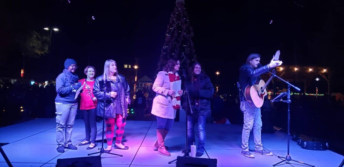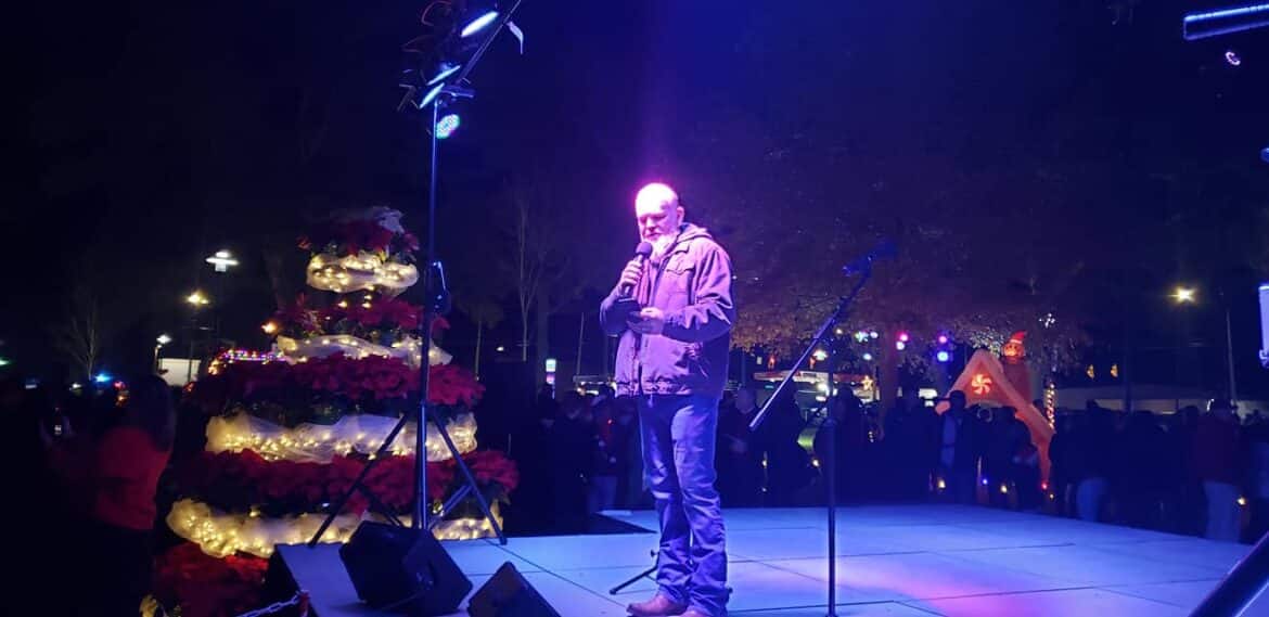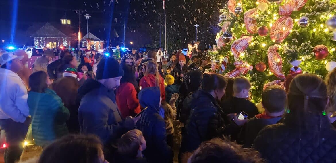 Just prior to the tree lighting, Mayor Al Kelley welcomed everyone to the event, saying it is a perfect representation of the community. He thanked everyone who played a part in bringing the event together beautifully. He also introduced the city council members, and then began the countdown to the Lighting and Snow Fall to wild cheers.