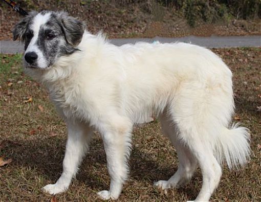 Lashes is a 1-year-old female Border Collie/Great Pyrenees who must be spayed before adoption. She was picked up by County Animal Control and brought to PAHS; no owner came forward to claim her. Lashes has a long white coat and she has gray markings. She weighs 51 pounds, so she is considered to be a medium sized dog. Lashes is super shy and very quiet. Lashes is easily frightened by sudden movements and loud noises; and she is terrified of cars. Due to her shyness, we would recommend she be in a home with older children only; and she would be fine with dogs. Lashes is a very loving dog who is going to quickly bond with her adopter and become a very devoted companion. Please consider helping our sweet and shy girl by giving her a loving home. Reading back over Lashes’ bio–we forgot to state the obvious!!!! SHE IS GORGEOUS–a truly beautiful girl!