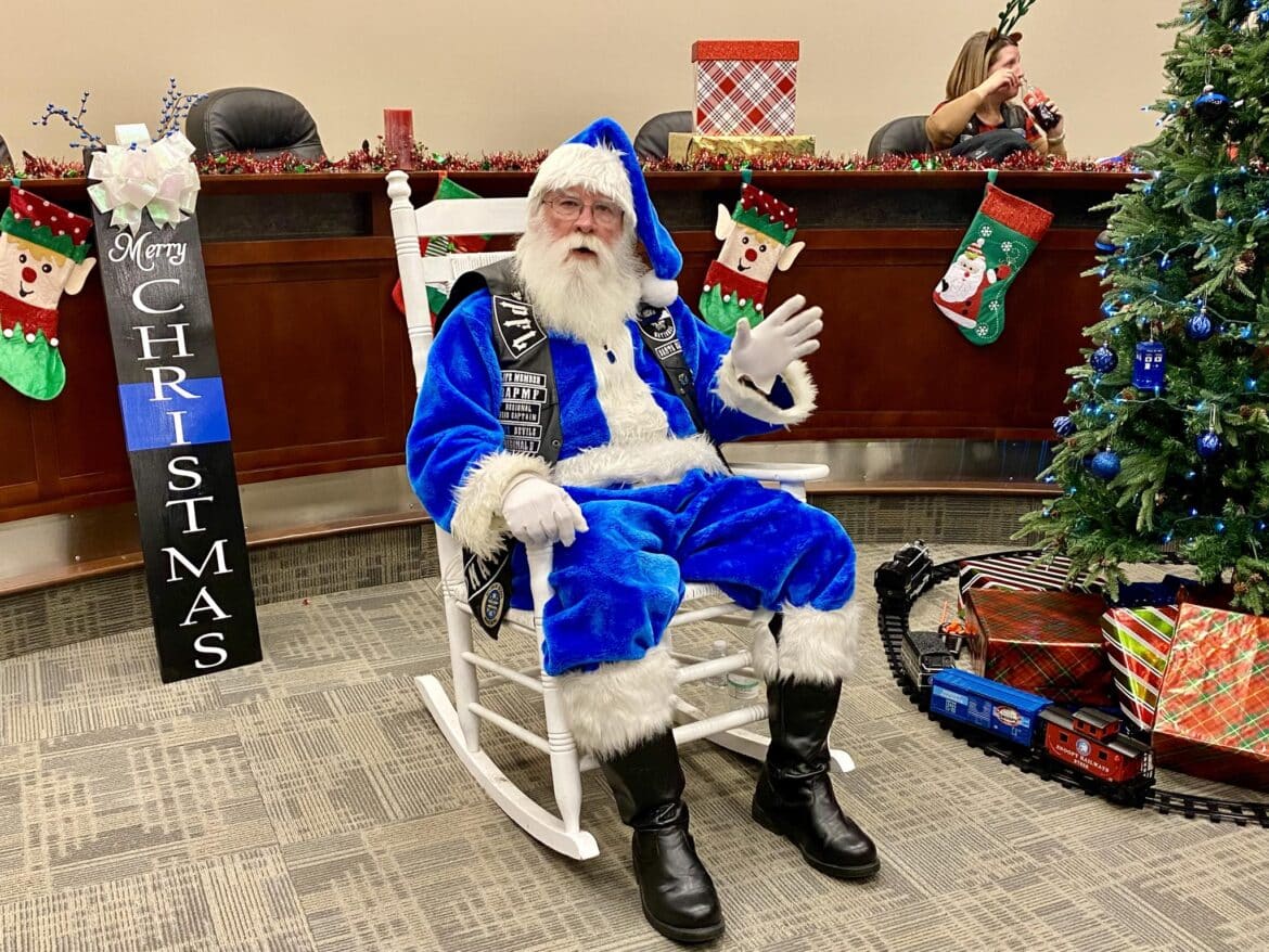 All of it was done under the watchful eye Thursday of the International Blue Santa Claus, who is a bonified member of The Punishers LEMC. He visited with children, hearing their hopes and dreams. There were a lot of hugs and smiles.