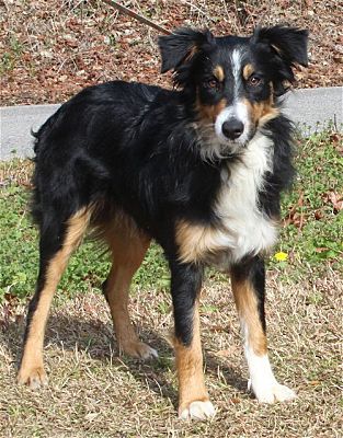 Bobo is an 1-year-old male Aussie (Australian Shepherd) who must be neutered before adoption. He was brought to PAHS as a stray and his owner did not reclaim him. Bobo is SO handsome; his medium length coat is mostly black with both brown and white markings. He weighs only 33 pounds so he is considered to be a medium sized young dog. Bobo is just as sweet as can be and never meets a stranger! This friendly fellow loves people and we believe he will be good with other dogs and older children. Due to his playfulness and energy, we think he would do best in a home without younger children. Being a typical high energy guy, Bobo would do best with an active family who is willing to include him in all their outdoor adventures. He would also need a securely fenced yard to play. Bobo is the total package for the right adopter–at 33 pounds he is a great size, he is beautiful, sweet, and FUN!