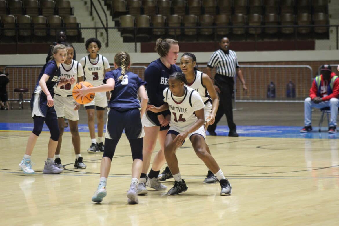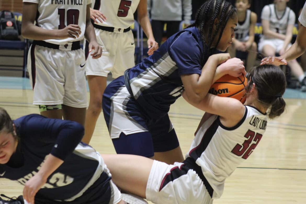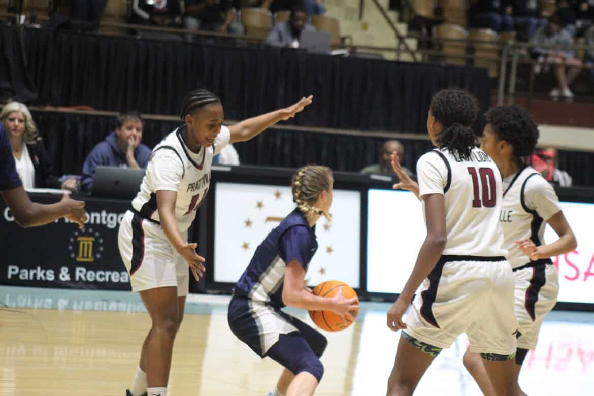 And they were ready to go. It was immediately apparent that Prattville’s pressure defense was going to be too much for Alma Bryant to handle. Midway through the opening quarter, sophomore KeLeigh Mullins had a steal and found Ullyriah Lewis for an easy basket and an 11-4 lead. The Hurricanes called a timeout, but they had no answer for the Lions. Jayla West-Young had a steal, and converted a layup while she was fouled, and the route was officially on before the 1st quarter ended.