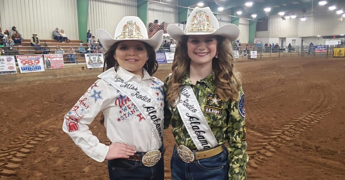 Top Photo: Autauga County Sheriff Mark Harrell presents a buckle to the Mutton Bustin’ winner, Carter Batts, from the Friday night competition. With him are family and rodeo queens to help him celebrate.