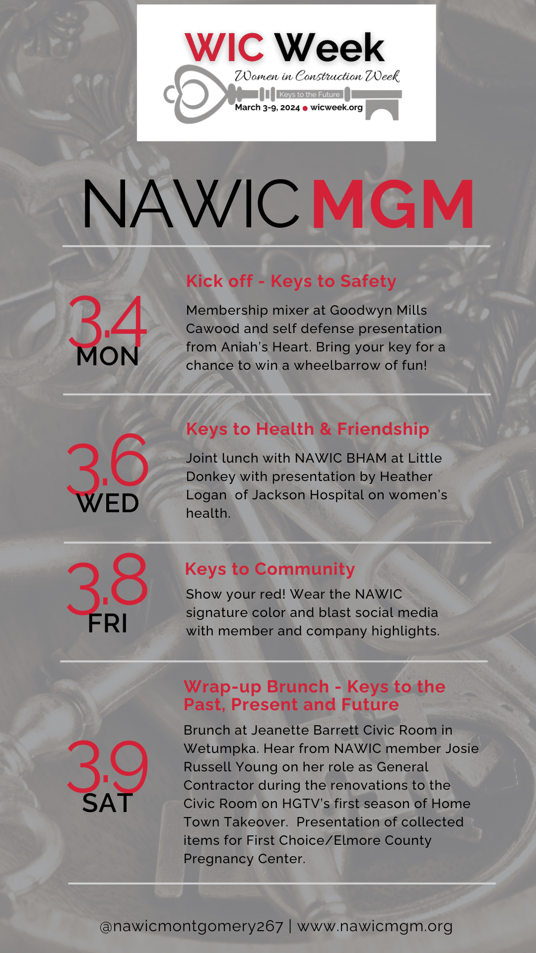 This year’s theme is “Keys to the Future,” according to their website wicweek.org. “Keys to the Future” celebrates the strength and knowledge of women and the vital role they play in shaping the future of the construction industry.
