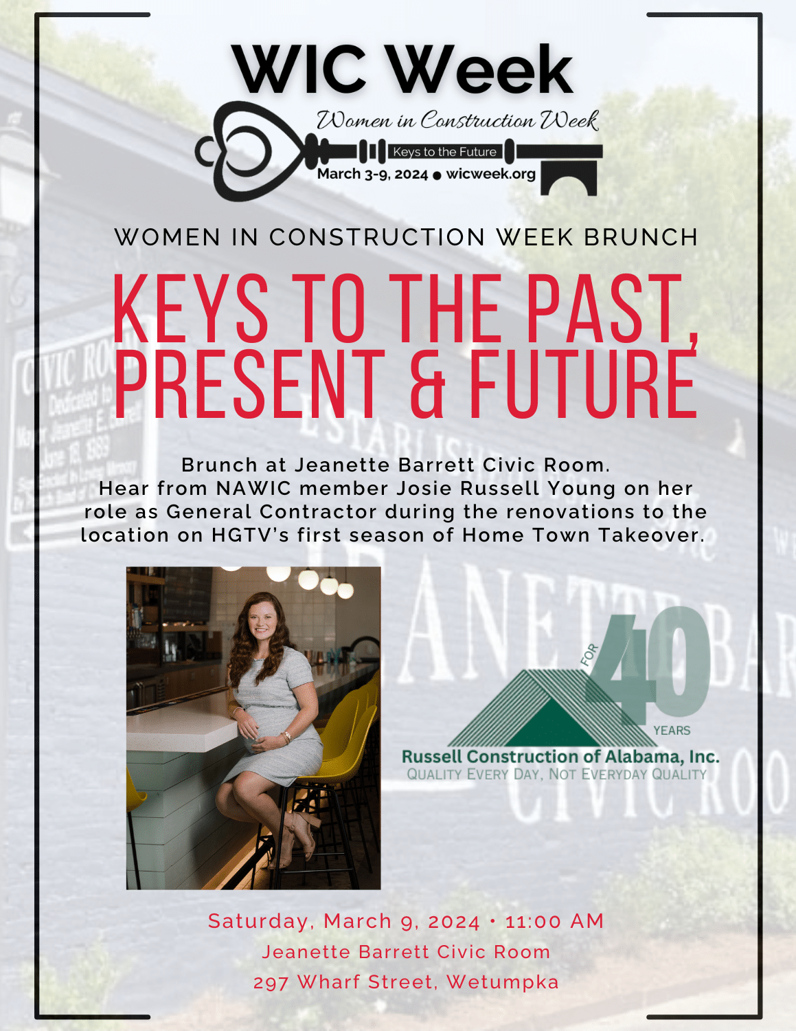 Other events will commence throughout the week, and the festivities will end with a WIC Week brunch, Keys to the Past, Present and Future, Saturday March 9th at 11 a.m. at the Jeanette Barrett Civic Room, 297 Wharf Street in Wetumpka.