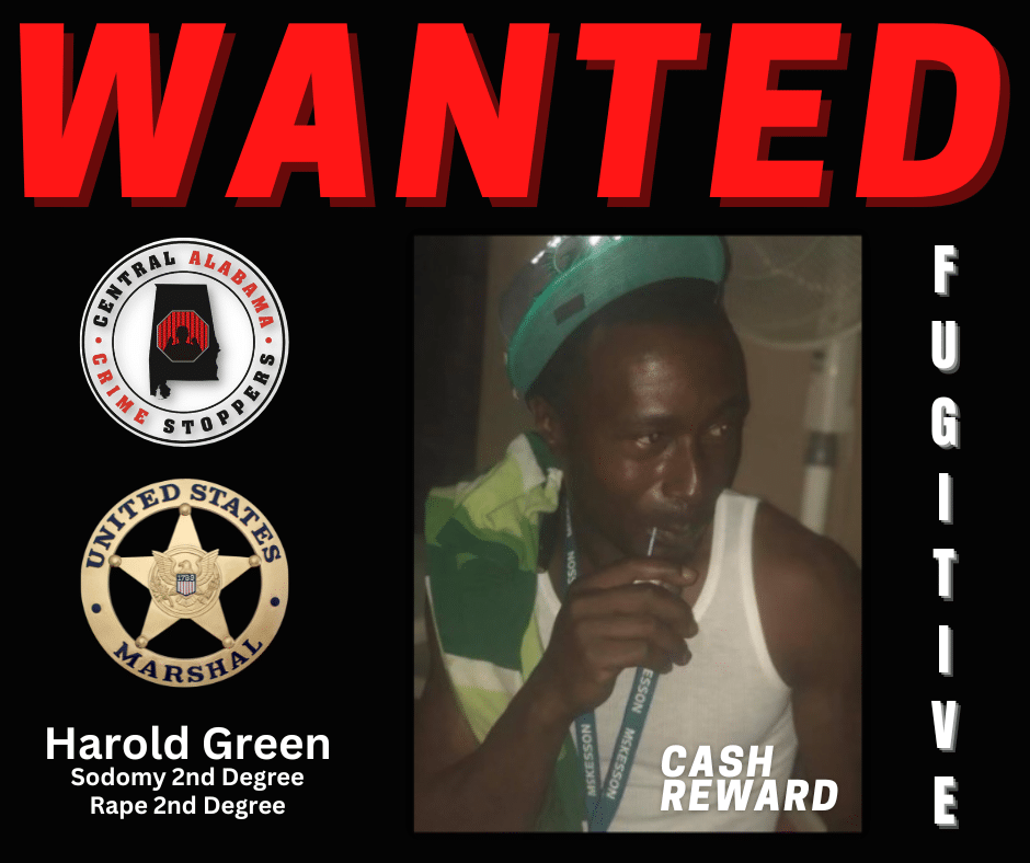 If you have any information regarding the whereabouts of Green, please immediately call the Police or CrimeStoppers using our 24-hour tip line 334-215-STOP (7867) or 1-833-AL1-STOP or download our P3-tips app. Make sure you receive a Tip ID and Password in order to dialog with Investigators in case there is a follow-up question. Your Tip may lead to a Cash Reward!