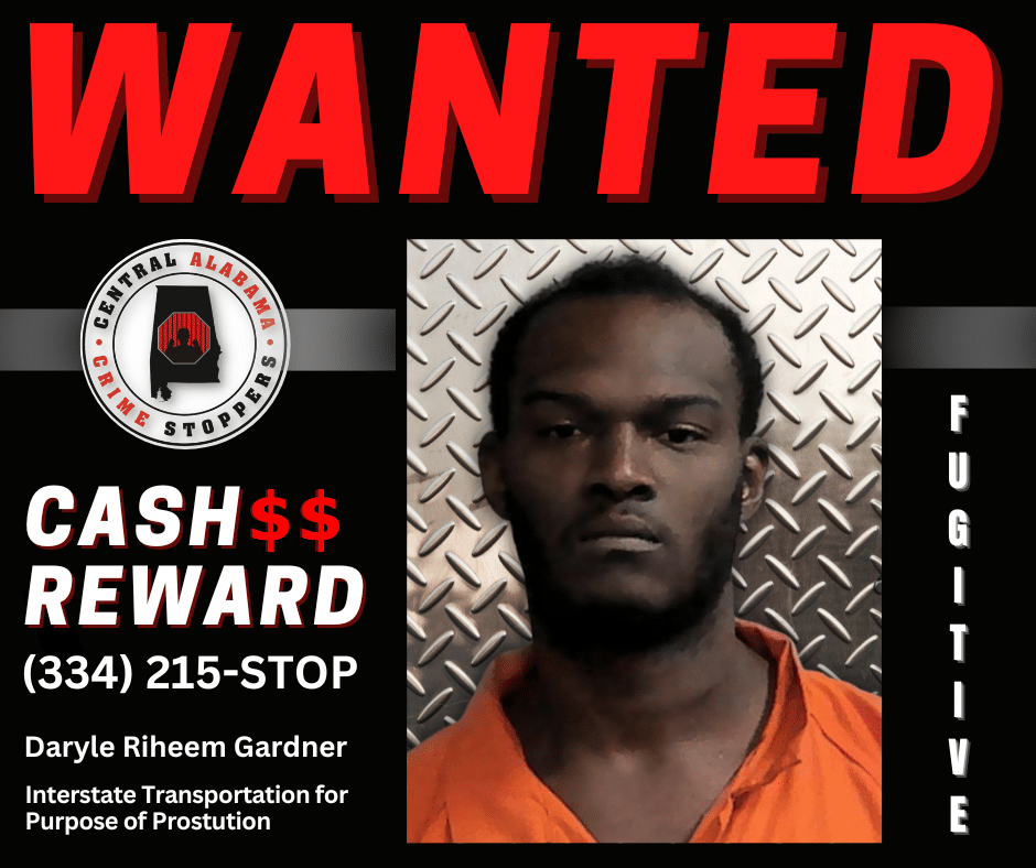 If you have any information regarding the whereabouts of Gardner, please immediately call the Police or CrimeStoppers using our 24-hour tip line 334-215-STOP (7867) or 1-833-AL1-STOP or download our P3-tips app. Make sure you receive a Tip ID and Password in order to dialog with Investigators in case there is a follow-up question. Your Tip may lead to a Cash Reward!