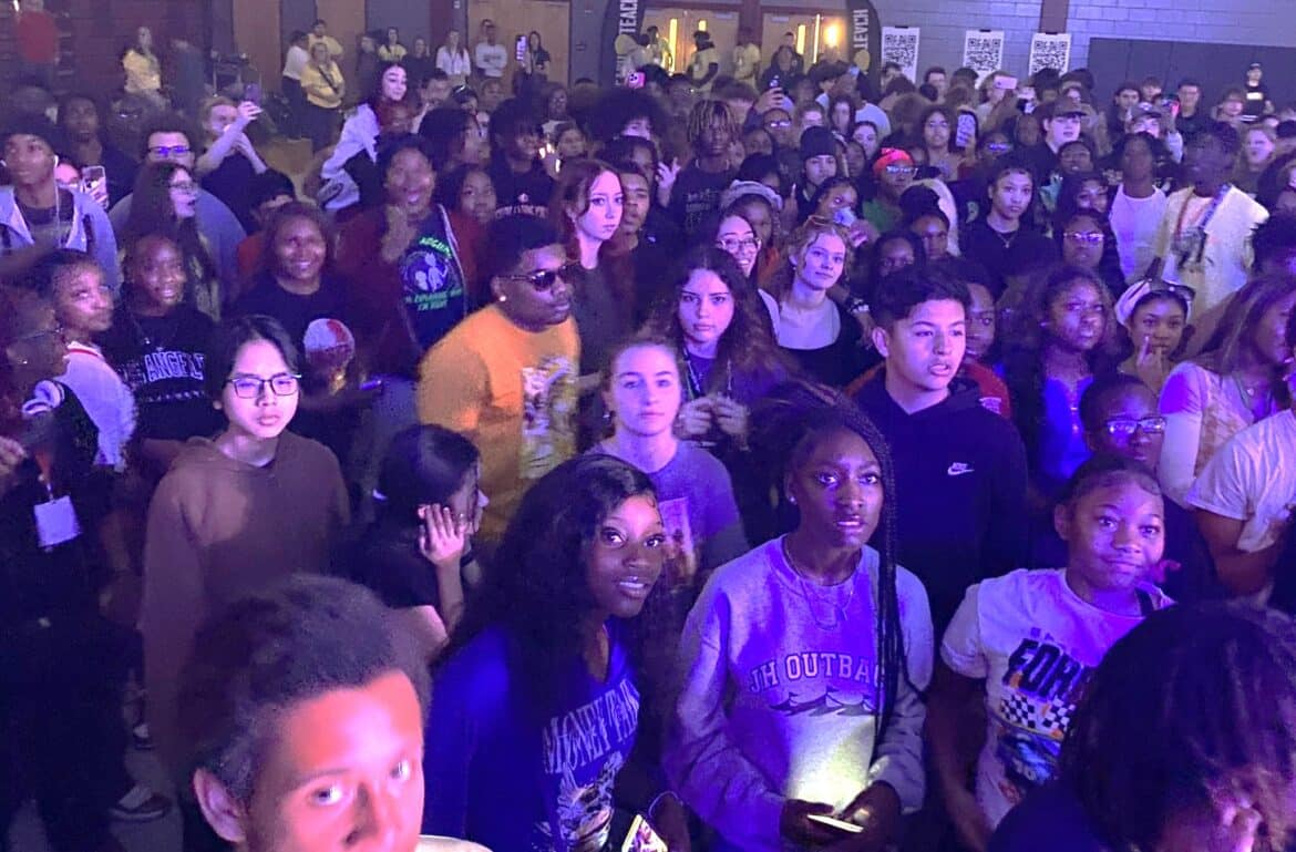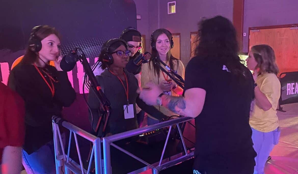 This year, a new added feature from the Reach and Teach program is the immersive career fair called ImaginEx. This is where creativity meets careers. Students were able to go to different stations before the concert and learn more about the music industry. They gained knowledge in podcasting, telecommunications, learning how to use cameras, spotlights, budgeting a concert, and made concert posters to keep for themselves. A Full Sail University advisor, Cassandra Brunson, was also onsite for students to speak to about furthering their education.