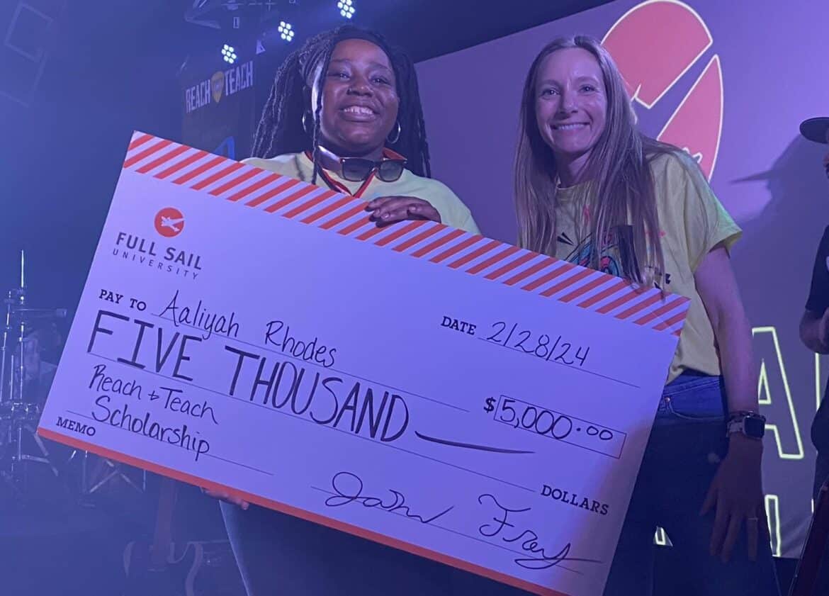 Aaliyah Rhodes, SEHS student, won a $5,000 scholarship to Full Sail University during the concert. Karina Weldon, SEHS student, was picked out of a drawing during the concert, and she received a custom SEHS Mustang guitar.