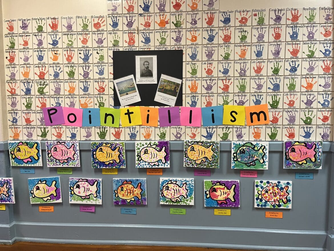 “We practiced pointillism in our class, and our students did heart art, and some Cat in the Hat as it is Read Across America Week. We practiced pointillism with that as well. This was one of the ways we wanted to give them an opportunity just to see different things and perspectives. Not just the usual academics, but also to express who they are. My children have great talent and to see the kids say, ‘wow this is what I created,’ and for them to be so proud of what they have done has been wonderful to watch,” PKS teacher Wilshelia Ezell in room four said with a wide smile.