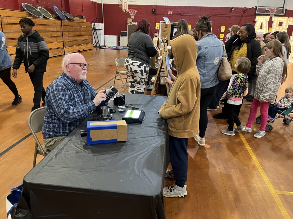 These booths consisted of local photographers, the Prattauga Art Guild, local sculptures, authors and more, where students could mold their own clay, pick up old film cameras and look through the lens or pick up a brush to add to a communal art project.