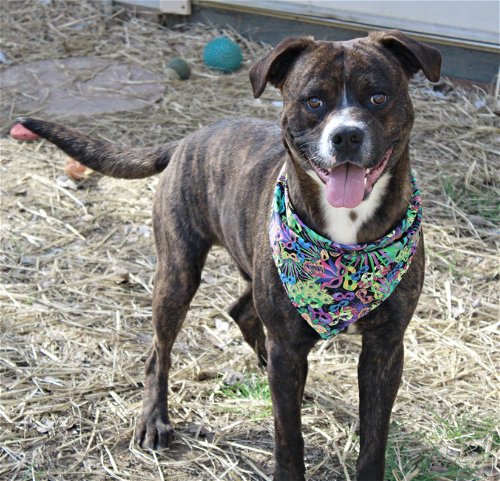 Huggy is a 2-3 yr old male Pit, about 45 lbs, brought to us as a stray never reclaimed. His name suits him as he just wants to be in your lap and getting hugs and cuddles and would love to be a couch potato with a loving family. Huggy is good with other dogs, loves treats (of course) and will give slight attention to toys, then be content laying in the shade for a while.