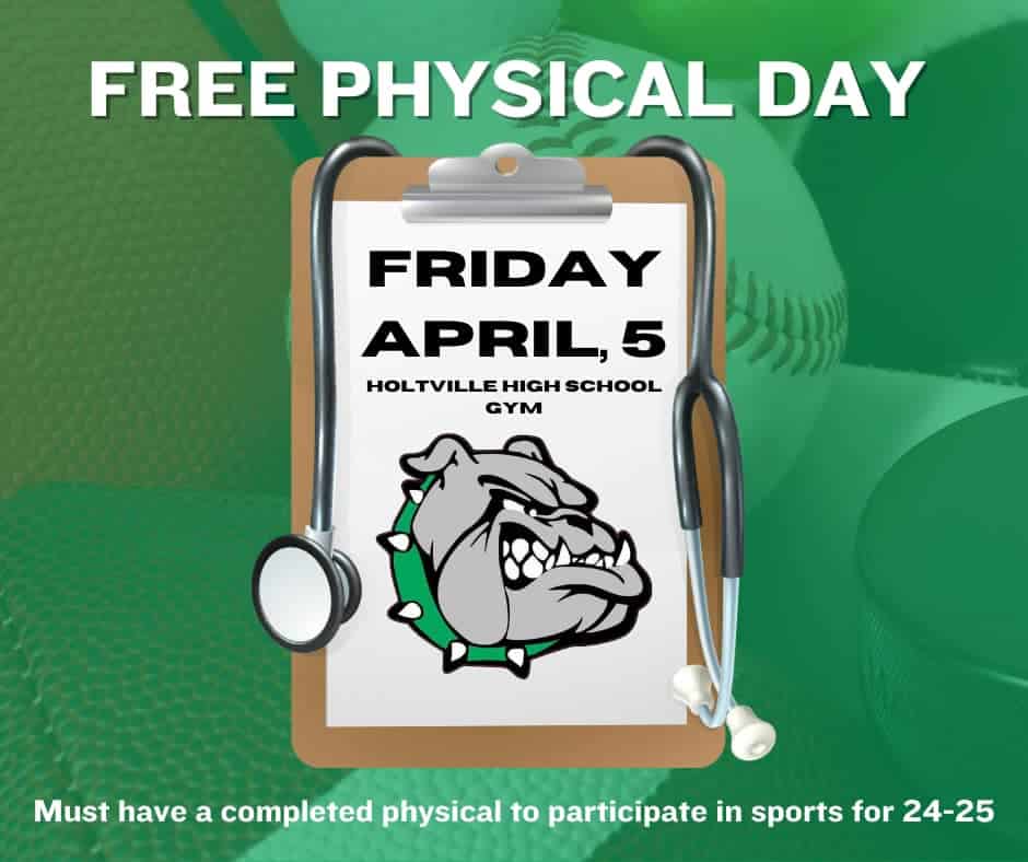 We will be providing a Free Physical Day for all Holtville High School and Holtville Middle School Athletes. All athletes are required to have an updated physical yearly to participate in sports. This is the best way to ensure your student-athlete has an updated physical for the entire 2024-2025 school year without having to pay for a doctor’s visit!