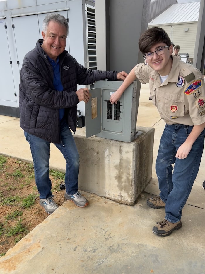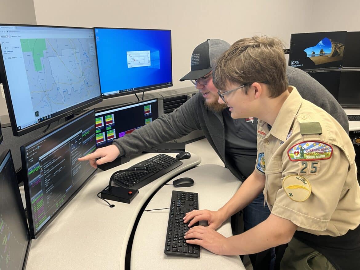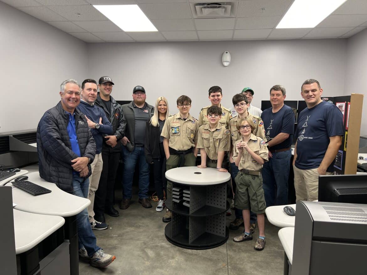The participants from BSA Troop 25 participated in a practice drill with the Prattville Fire Department (PFD) and Autauga County Emergency 911 Communication Center. The project was conducted at Fire Station #4 due to having the alternate 911 center co-located within the facility.
