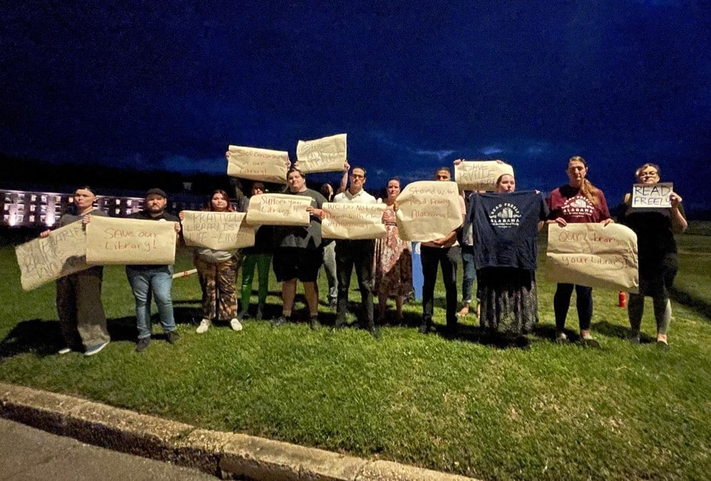 In attendance at the meeting were many members of Read Freely Alabama, which member and one of the founders, Angie Hayden gave a statement to the press after the meeting concluded.