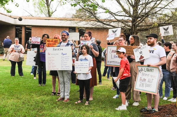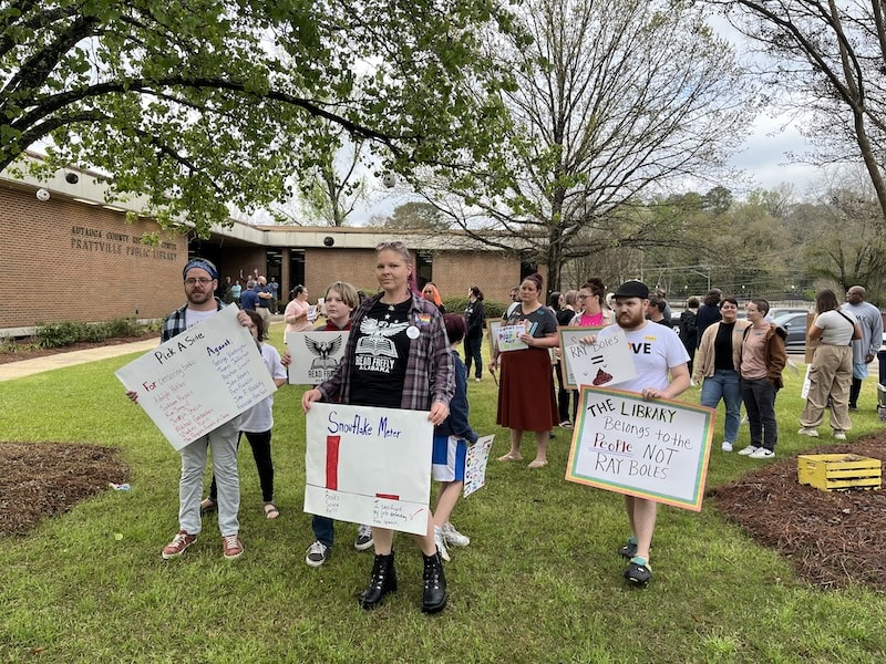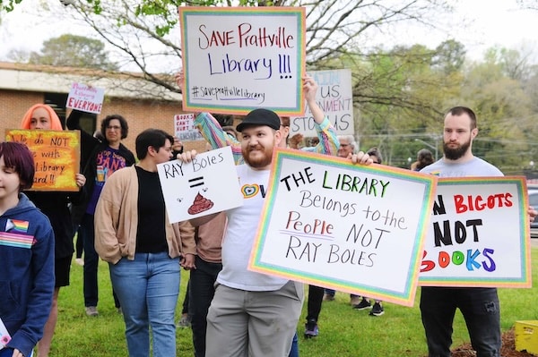 Prior to the meeting members of the community and Read Freely Alabama held signs in protest of Ray Boles and the Board. Some of the signs read โSave the Prattville Library!” “Ban Bigots not books,โ and โThe library belongs to the people, not Ray Boles,โ among others.