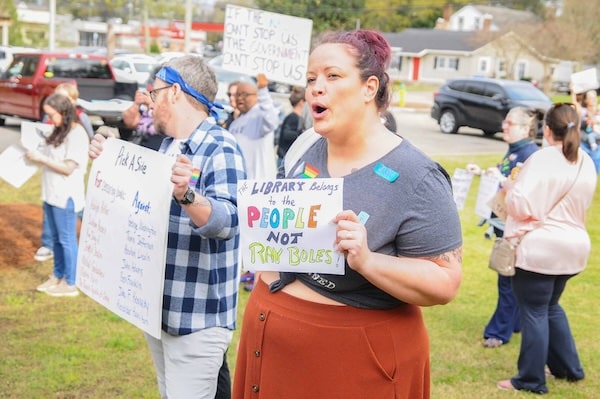 A husband of a library staff member who wishes to remain anonymous stated that library staff have been heckled by Cleanup Alabama members in the past and was visibly distraught over his wifeโs safety at her place of employment.